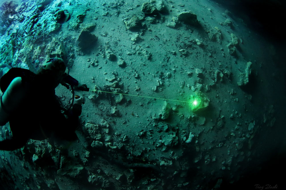 The ability to point and signal conveniently is now provided by the green (or optional red) laser. This is not only a scuba signalling device but a 1000 lumens dive light!